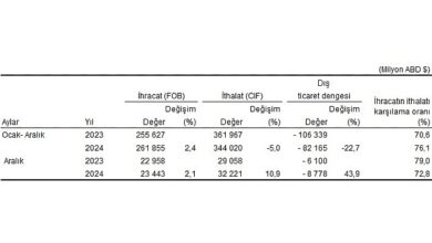 Türkiye İstatistik Kurumu ile Ticaret Bakanlığı iş birliğiyle genel ticaret sistemi kapsamında üretilen geçici dış ticaret verilerine göre; ihracat 2024…