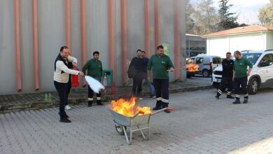 Antalya Büyükşehir Belediyesi itfaiye ekipleri, Manavgat ve Kemer ilçe hizmet birimlerinde çalışan personele yönelik yangın eğitimi ve yangın söndürme tatbikatı…