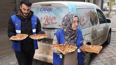 Canik Belediyesi, karın tadını çıkaran çocuklara pizza ikram ederek mutluluğu ikiye katladı.