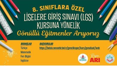 Nevşehir Belediyesi tarafından açılacak olan Liselere Giriş Sınavı (LGS) Kurslarında görev yapacak gönüllü eğitmenler için başvurular başladı.